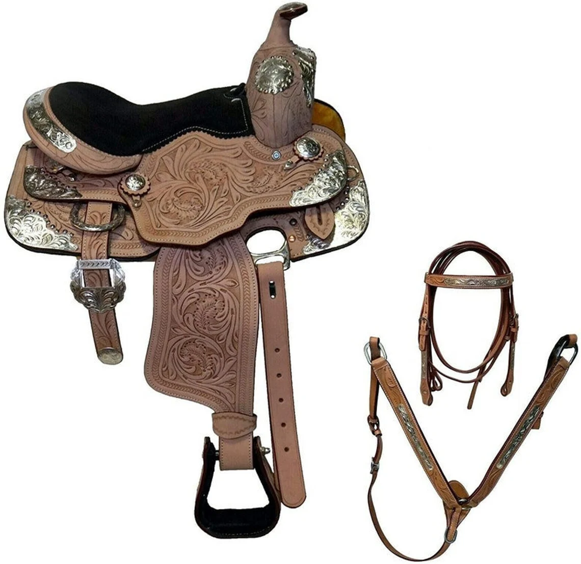 Complete Tack Set: Includes matching headstall, breast collar, and reins for a coordinated western look.