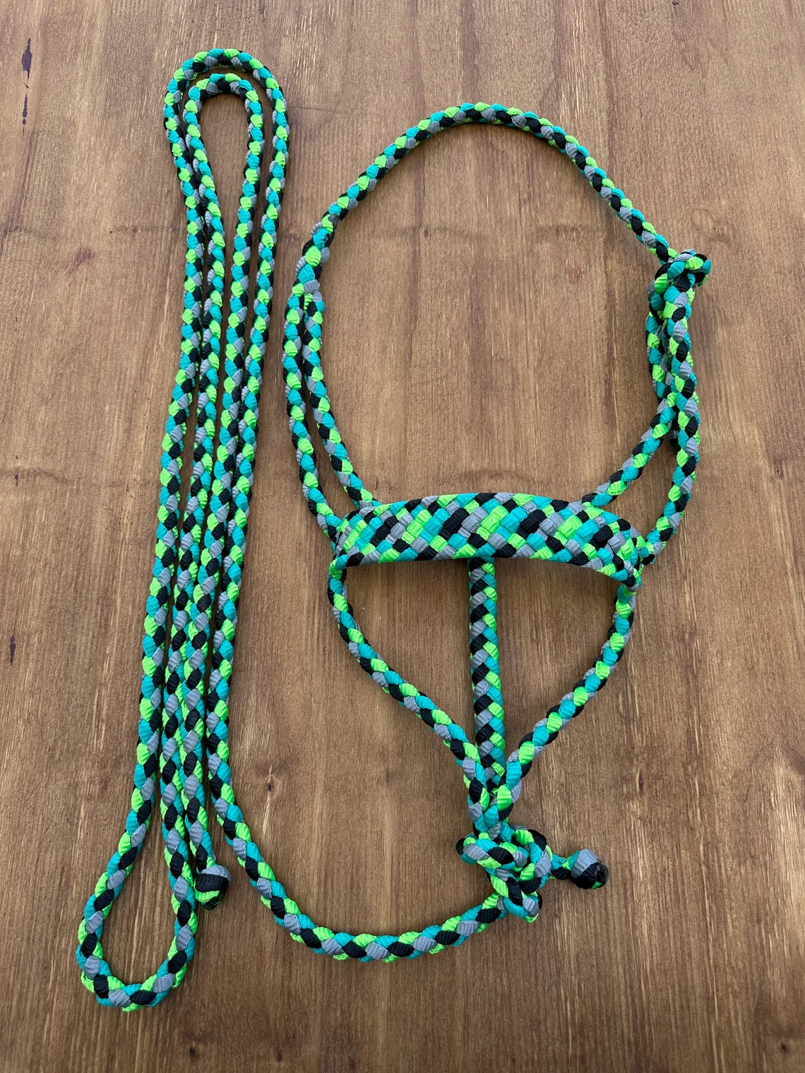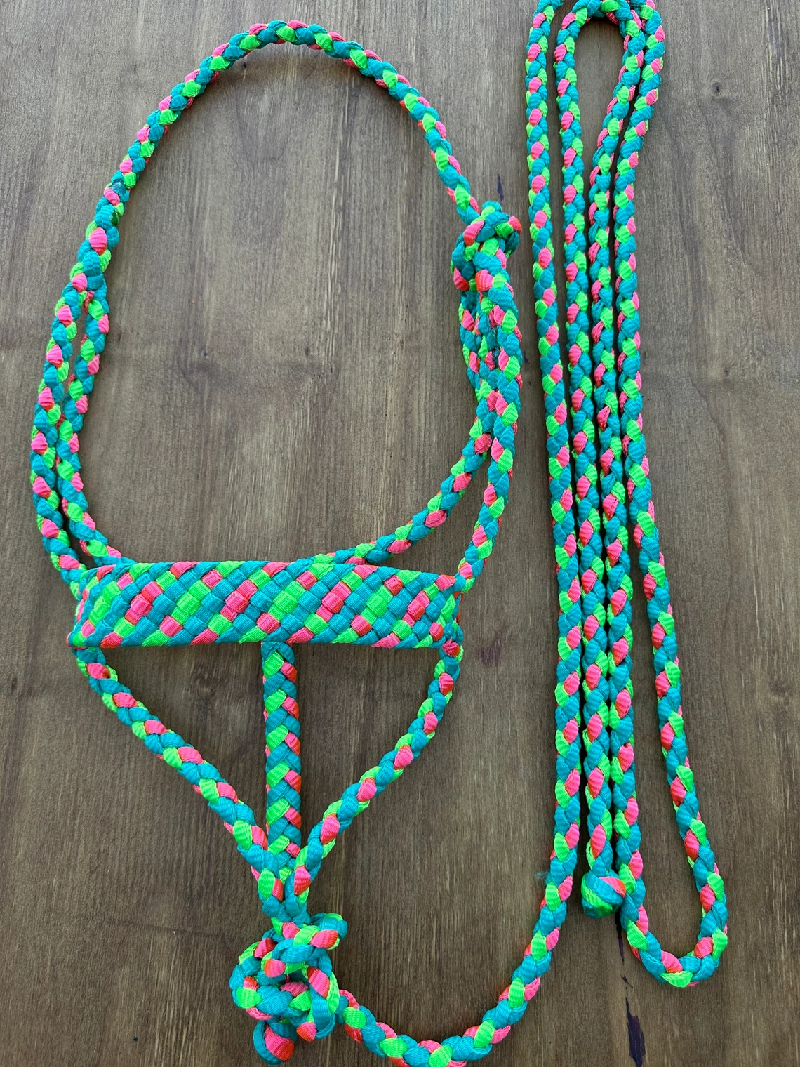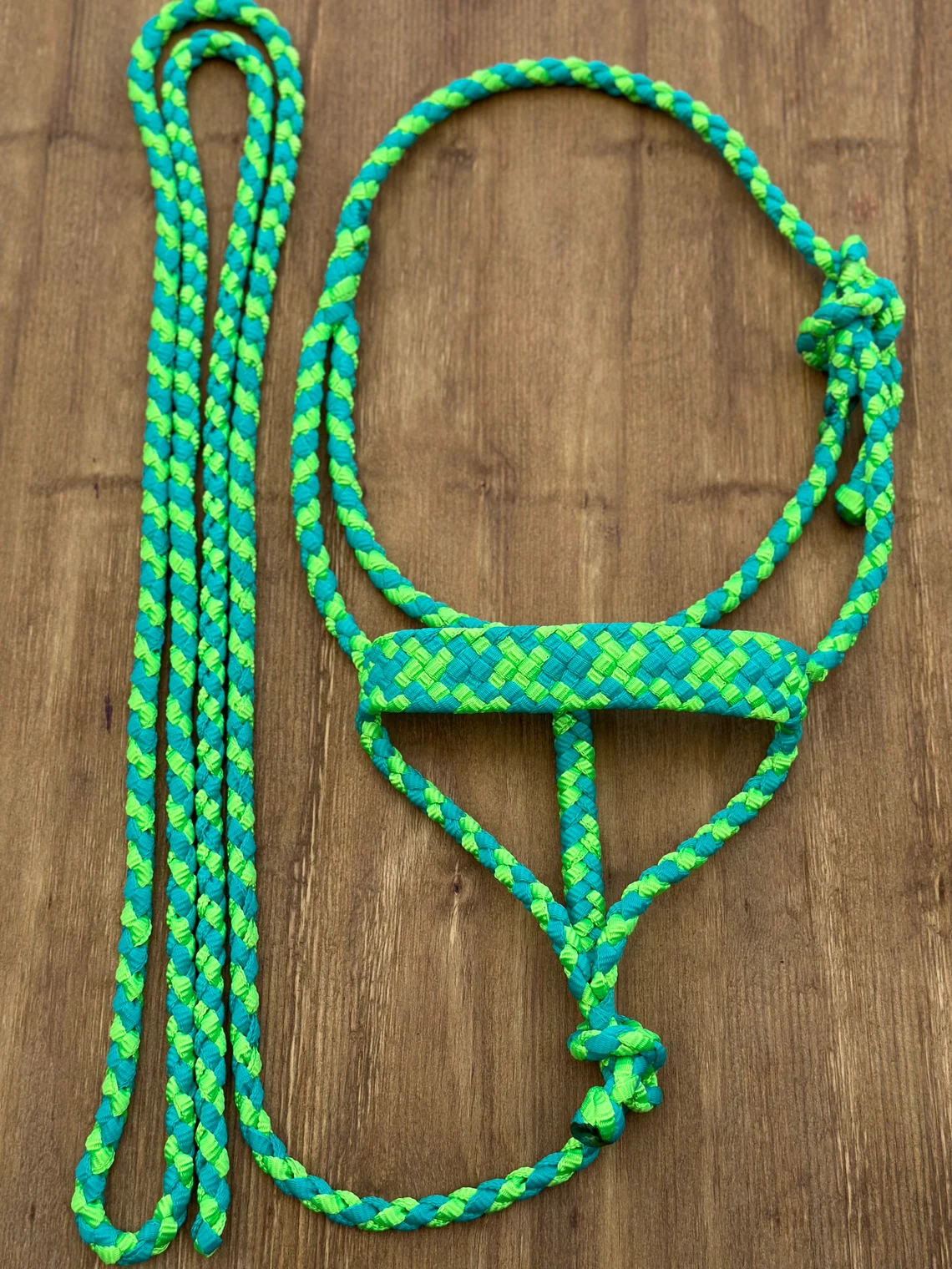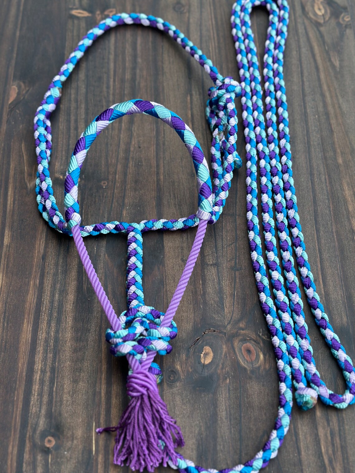 In each of my halters and lead ropes, there are 4 strands of mule tape tightly braided together to ensure minimal stretching, proper sizing and a very even, uniform look. It is also very soft and comfortable for your horse. Did I mention how pretty those colours are? They don’t fade, stain or bleed over time so they’ll stay bright and vibrant for many years to come! My standard halter fits a 14.2-15.3 hands tall horse, if you need one a little smaller or bigger just leave me a note in the comment section of your order or send me a message, it will still be shipped within 1-2 days. They come with a 9 ft detachable lead. On my lariat noseband halters, my lead ropes can be used as reins on the halter and be turned into a loping hackamore as well, they are the perfect 2 in 1 halter! If you’ve got any questions or would like to order something custom, please shoot me a message, I would love to create something unique and just for you.