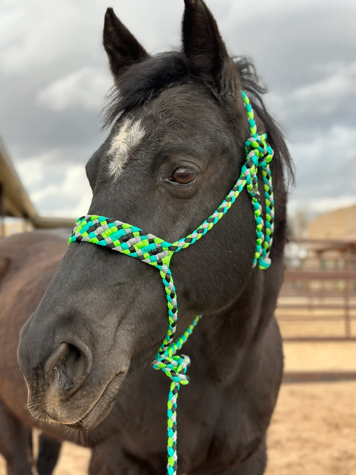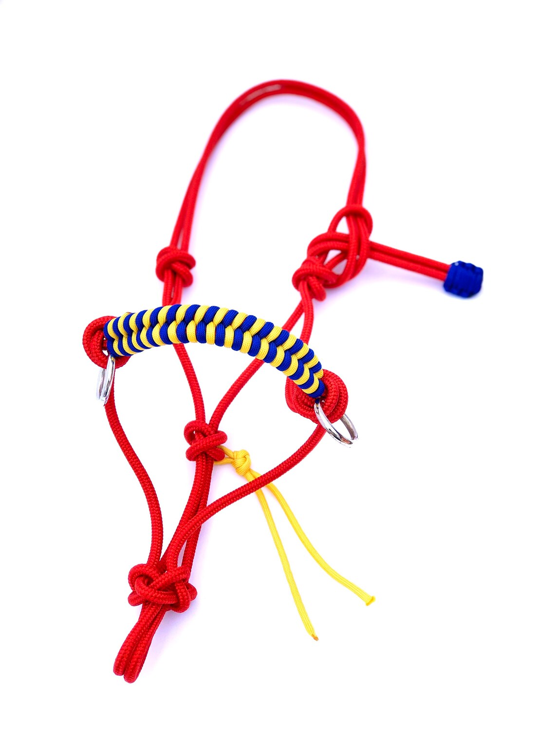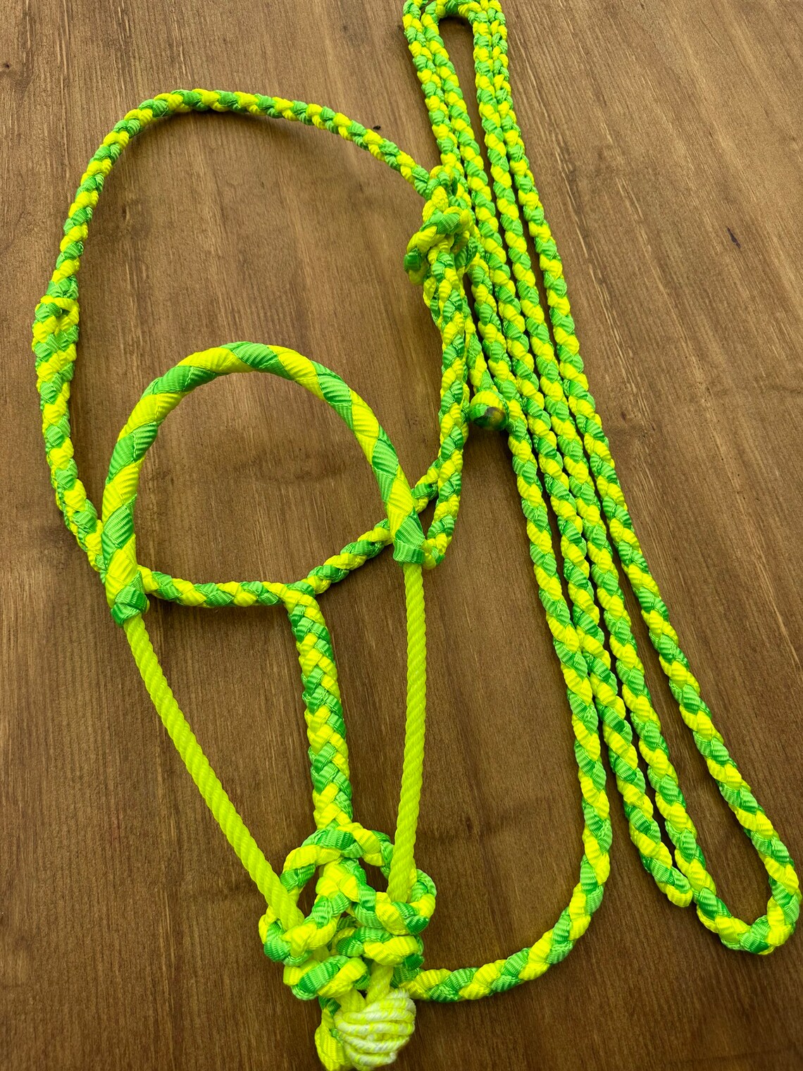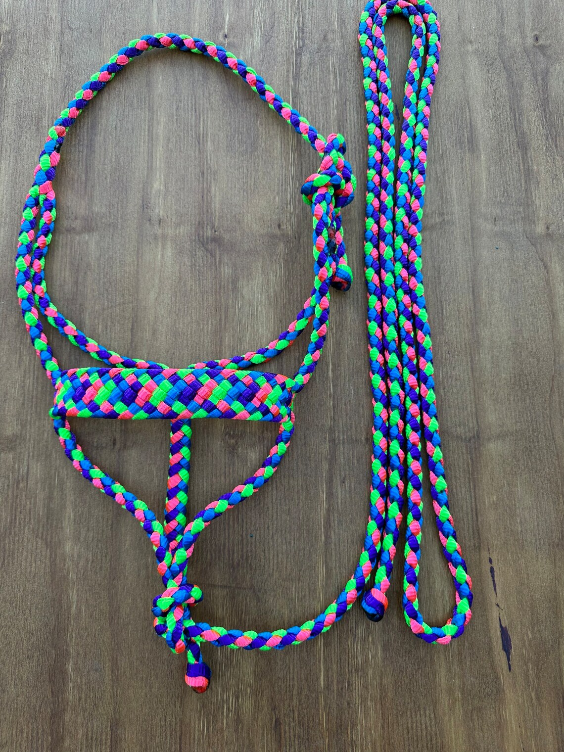 In each of my halters and lead ropes, there are 4 strands of mule tape tightly braided together to ensure minimal stretching, proper sizing and a very even, uniform look. It is also very soft and comfortable for your horse. Did I mention how pretty those colours are? They don’t fade, stain or bleed over time so they’ll stay bright and vibrant for many years to come! My standard halter fits a 14.2-15.3 hands tall horse, if you need one a little smaller or bigger just leave me a note in the comment section of your order or send me a message, it will still be shipped within 1-2 days. They come with a 9 ft detachable lead. On my lariat noseband halters, my lead ropes can be used as reins on the halter and be turned into a loping hackamore as well, they are the perfect 2 in 1 halter! If you’ve got any questions or would like to order something custom, please shoot me a message, I would love to create something unique and just for you.
