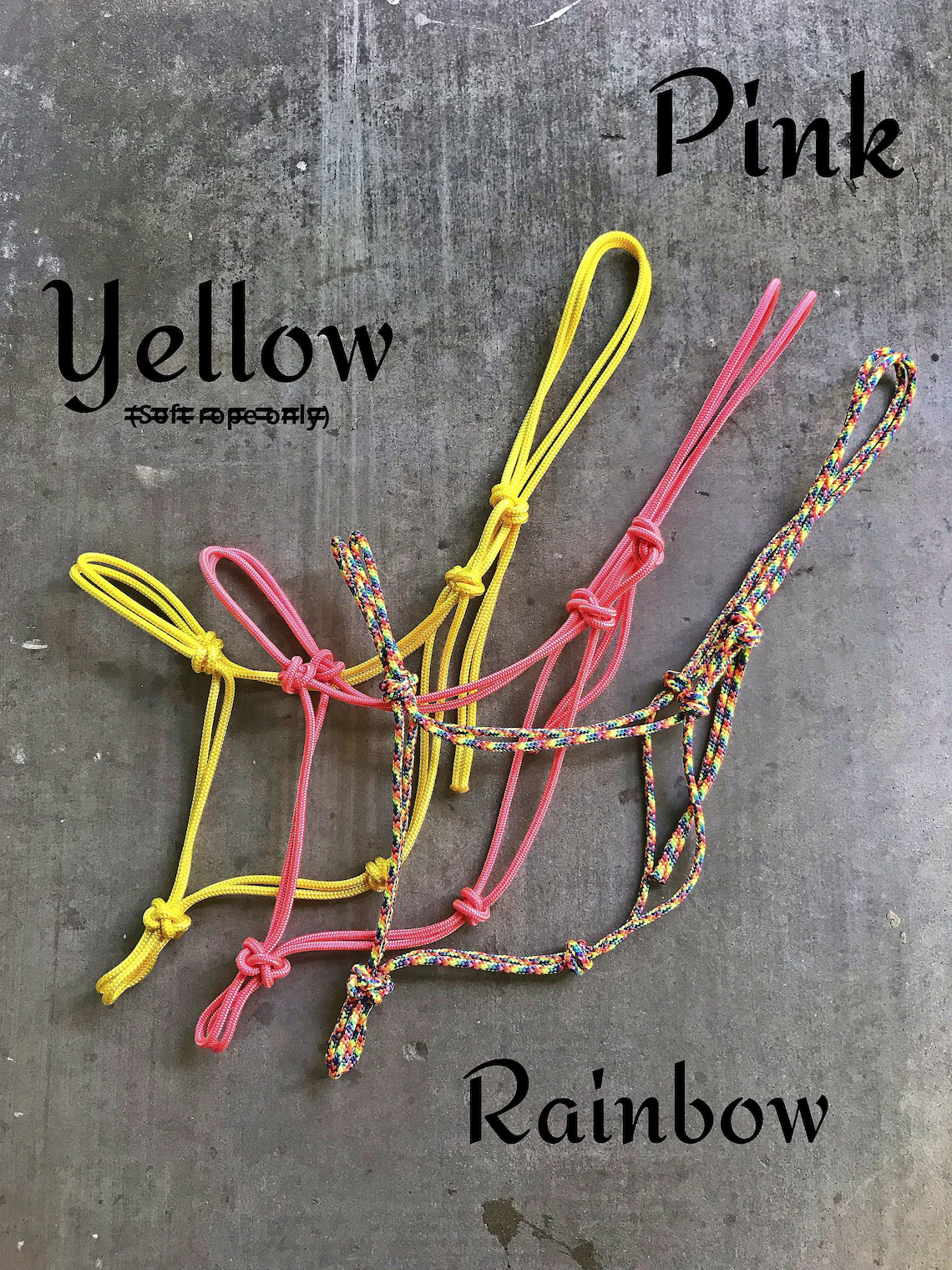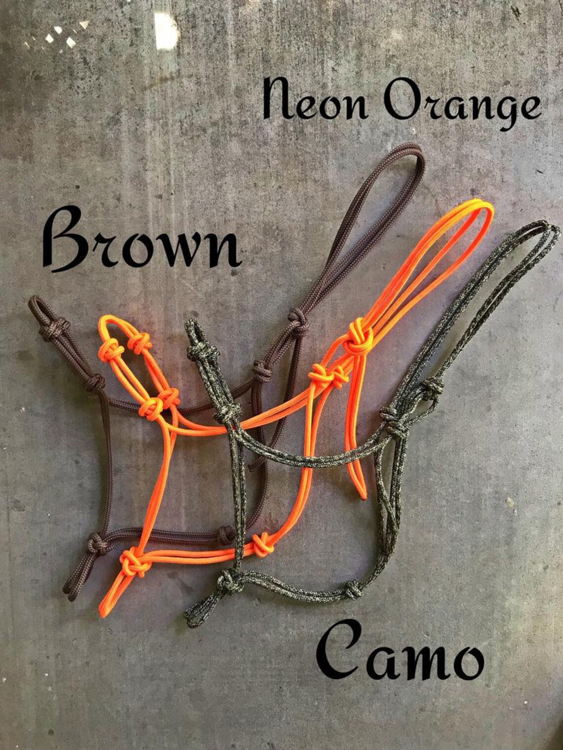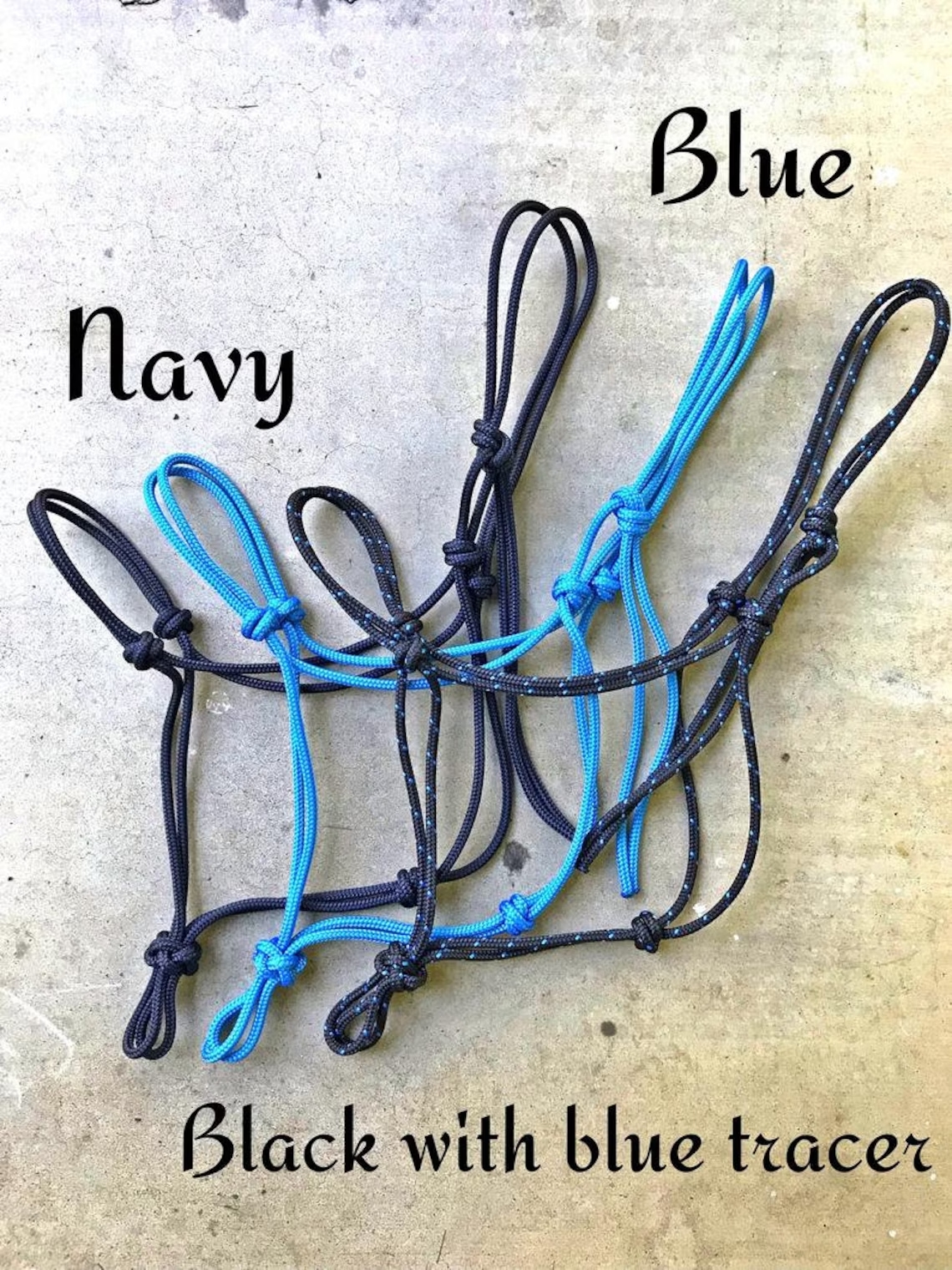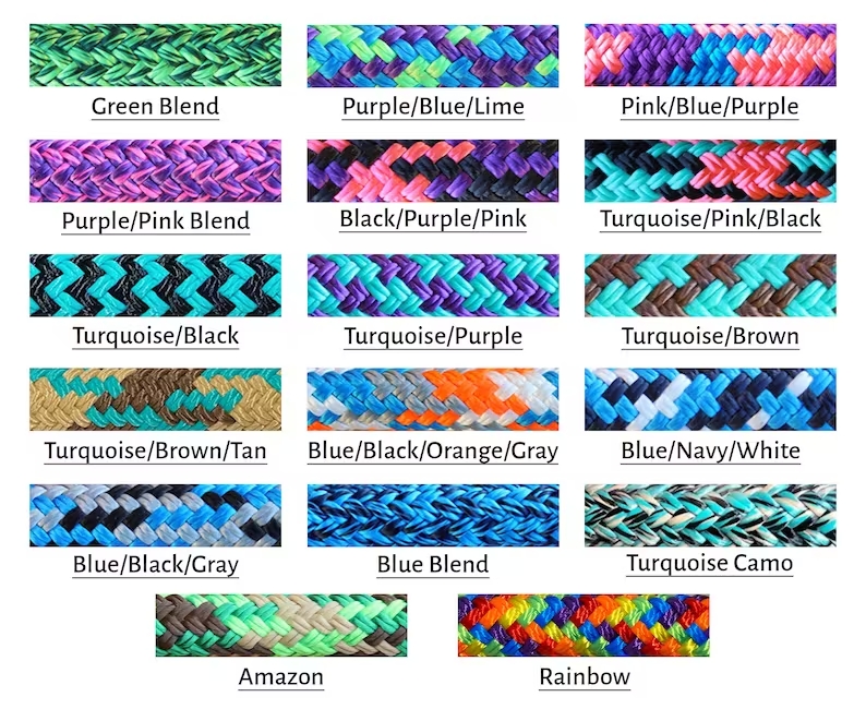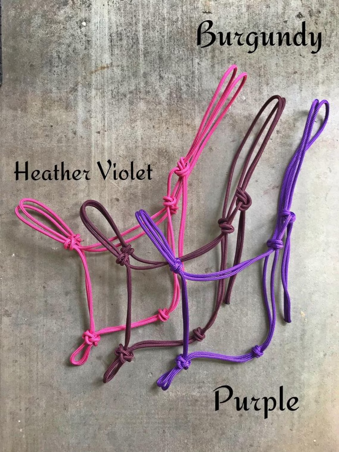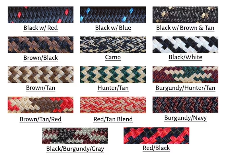 Custom 4 Knot Braided Noseband Rope Halter, Custom Horse Halter, 4 Knot Rope Halter, Yacht Rope Halter, Horse Halter, Clinician Halter. Custom rope halters are made from premium 1/4″ double braided yacht rope. You choose the color, size, and stiffness. These are great halters for everyday use, hunting, trail riding, and so much more. The rope is fade resistant, wont mold, and will hold true to shape. The softer halters are mainly for everyday use and the stiff halters are great for training.