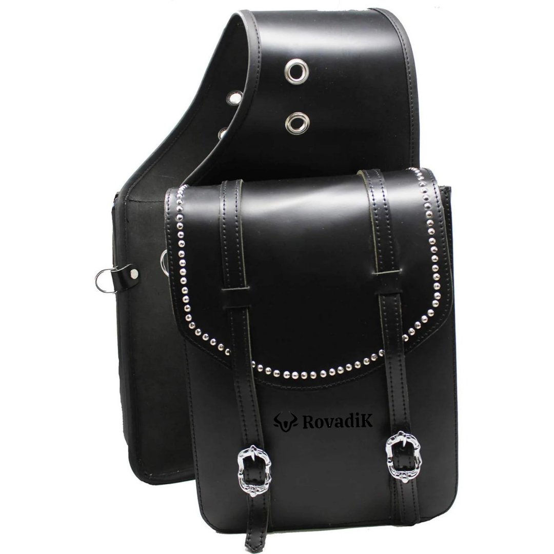 Rovadik Genuine Leather Horse Riding Saddle Bags – Durable Western Saddle Panniers for Trail Riding, Ranch & Outdoor Use – Handmade Equestrian Gear with Buckle Straps & Spacious Storage